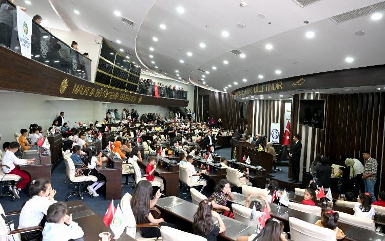 Malatya Büyükşehir Belediyesi Meclis Salonu’nda gerçekleşen 23 Nisan Ulusal Egemenlik ve Çocuk Bayramı programına, Malatya Büyükşehir Belediye Başkanı Sami Er, Malatya Kent Konseyi Genel Sekreter Yardımcısı Hasan Batar, Malatya Kent Konseyi Çocuk Meclisi Başkanı Ravzanur Güde ve Kent Konseyi Çocuk Meclisi üyeleri ile aileleri katıldı.