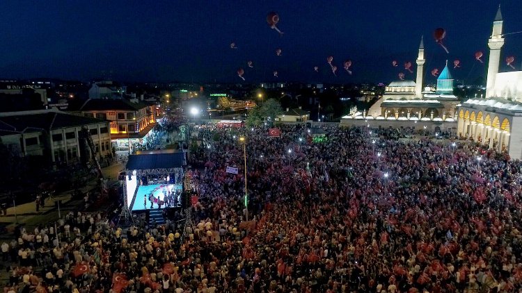 Binlerce vatandaşın katılacağı Mevlana Meydanı’ndaki programda ise saat 21.00’de Cumhurbaşkanı Sayın Recep Tayyip Erdoğan’ın “Millete Sesleniş” konuşması yapılacak. Devamında sinevizyon gösterisi, şiir dinletileri, konserlerin yer alacağı program kapsamında saat 00.13’te salâ okunmasıyla demokrasi nöbeti başlayacak. Sabah ezanının ardından saat 04.30’da demokrasi nöbeti sona erecek ve Sultan Selim Cami önünde vatandaşlarla ikramda bulunulacak.