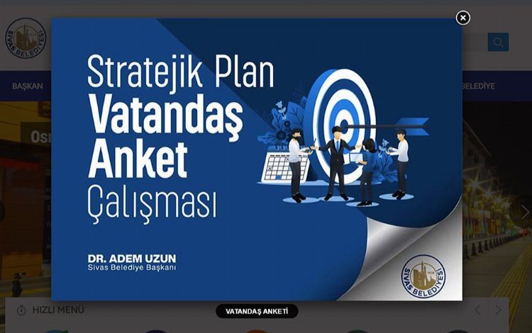 Stratejik plan çalışmaları çerçevesinde vatandaşların Sivas Belediyesi’ne ilişkin görüş ve önerilerinin alınması adına uygulanan ankete adresi üzerinden erişilebiliyor.