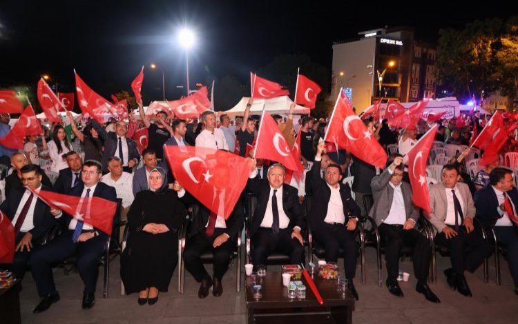 “Sayın Cumhurbaşkanımızın da ifade ettiği gibi; milletin sandıkta tecelli etmiş iradesine ve ‘Ben irademe sahip çıkarım’ diyen bir şehrin belediye başkanı olarak diyorum ki egemenlik kayıtsız şartsız milletindir. Önemli olan zor zamanda kahraman olabilmektir. Önemli olan zor zamanda darbenin seyrinin neye evrileceğini bekleyen sinsilerden olmamaktır. İlk andan itibaren meydana çıkıp ‘bu ülke için, bu vatan için canımı veririm’ diyebilmektir marifet. Gece saat 12’den sonra en büyük demokrasi havarisi kesilenlere bu millet hep birlikte ders vermiştir. İşte ne onların yapımcıları ve yönetmenleri ne onların taşeronları ne de onların finansörleri milletin iradesinin üzerinde bir güç olmadığını anlamamışlardı. Ama biz Ergenekon’dan çıkan bir avuç Türklerin torunlarıyız. Ama biz birkaç atlı ile birlikte yola çıkıp Osmanlı Devletini kuran Osman Gazi’nin torunlarıyız. Yıkılmaz denilen surları yıkan, müjdelenen şehri alan Fatih Sultan Mehmet Han’ın torunlarıyız. Bilemediler, biz tersaneleri zapt edilmiş, kıyıları işgal edilmiş bir ülkenin inanmış insanlarının, 19 Mayıs’ta Samsun’a çıkıp Cumhuriyet kuran ataların torunlarıyız. İşte 15 Temmuz bu birliğimizi, beraberliğimizi ve demokrasimize nasıl sahip çıktığımızı gösteren bir geceydi. Allah bir daha demokrasiye, milletin iradesine el uzatanlara fırsat vermesin. Nasıl ki Adnan Menderes’e yaptıklarında, 80’de yaptıklarında, 28 Şubat sürecinde Erbakan Hocaya yaptıklarında, 27 Nisan Bildirisinde, 17-25 Aralık’ta, Gezi’de ve en son 15 Temmuz’da nasıl ki bu millet iradesine sahip çıktıysa bundan sonrada iradesine sahip çıkacaktır. İradesine en iyi sahip çıkan bir şehrin belediye başkanı olmanın gururuyla bu Aziz Milleti saygıyla selamlıyorum. İradesine sahip çıkan Nevşehirli hemşehrilerimin huzurunda bu uğurda canını ortaya koyan kahraman gazilerimizi saygıyla, hürmetle ve minnetle yaad ediyorum. Bütün şehitlerimizin ruhları şad mekanları cennet olsun inşallah.”