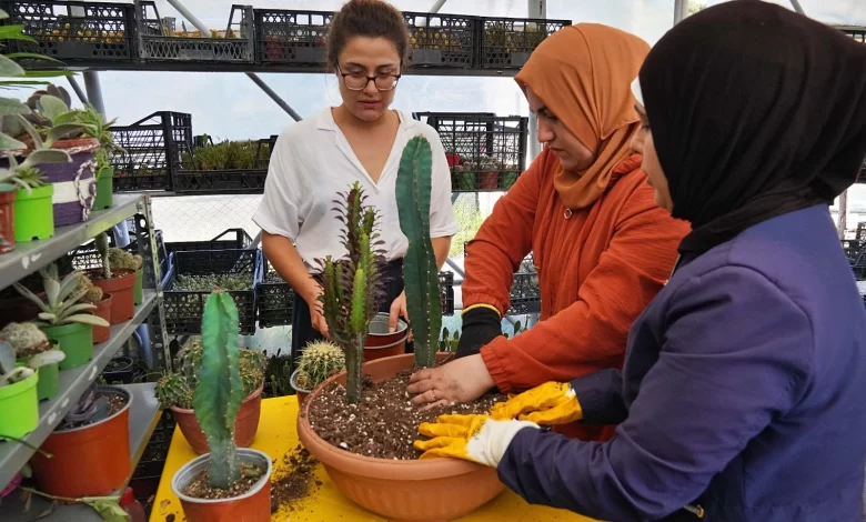 Serada üretim yapan Türkan Kaymaz, “Burada kaktüs ve sukulent bitkilerini büyütüp, çoğaltıyoruz. Kadınlar olarak birlikteyiz. Kardeşçe her şeyi birlikte yapmaya çalışıyoruz. Bu serada arkadaş çevremiz çoğaldı. Koşarak geliyoruz, çeşitli etkinlikler yapıyoruz. Toprakla uğraşıyoruz. Yetiştirdiğimiz ürünleri satmaya da başladık. İnşallah ev ekonomimize daha fazla katkısı olur” dedi.