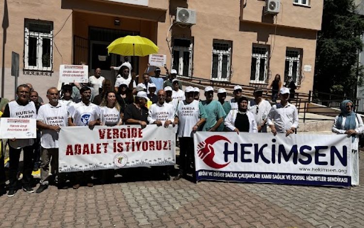 Dün TÜRK-İŞ sendaikasının yaptığı ‘vergide adalet’ konulu basın açıklamasının ardından Bursa Tabip Odası da vergi oranlarını eleştirmek üzere sahaya indi.