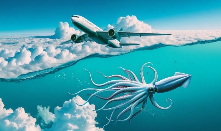 Mürekkep balığı, kendini savunmak emeliyle güçlü bir itme gücüyle hareket eder. Bu itme gücü, jet uçağının dizaynına ilham vermiştir. Jet uçaklarının itiş gücü, mürekkep balığının itme hareketinden esinlenerek geliştirilmiş ve yüksek süratte hareket etmelerini sağlamıştır.