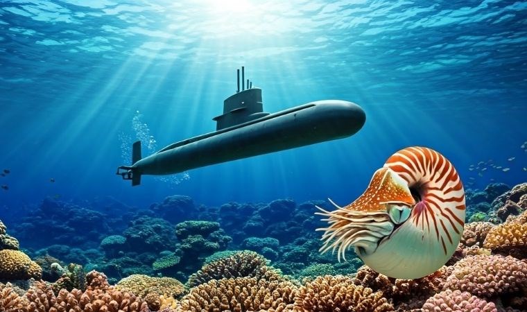 Nautilos balığı, suya batmak için bedenindeki özel odacıkları su ile doldurur ve yüzeye çıkmak için bu odacıkları özel gazlarla doldurur. Bu prensip, denizaltı teknolojisinin temelini oluşturur. Lakin, denizaltılarda yüzeye çıkarken suyun boşaltılması süreci, nautilos balığındaki gazla doldurma sürecinin yerini alır. Bu tasarım, su altında hareket etmeyi ve denizaltılar için gerekli dengeyi sağlamak için epeyce verimlidir.