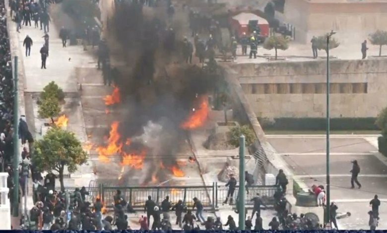 İşçiler, kamu çalışanları, emekliler ve öğrencilerden oluşan binlerce kişi parlamento binasının bulunduğu Atina’nın merkezindeki Sintagma Meydanı’nda bir ortaya geldi. Mitinge katılanlar dövizler ve sloganlarla hükümeti protesto etti, taleplerini sıraladı.