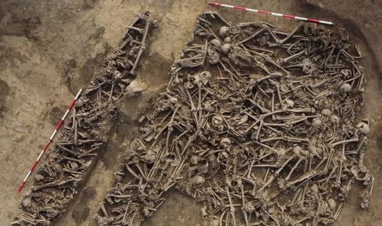 Kazılar sırasında, arkeologlar ve antropologlar tarafından en az 129 bireye ilişkin iskelet kalıntıları belirlendi. Lakin hafriyattan evvelki inşaat çalışmaları sırasında birtakım kemiklerin yerinden oynadığı düşünülüyor; bu nedenle toplam meyyit sayısının 150’yi geçtiği varsayım ediliyor. Cesetlerin toprağa tertipli formda değil, çabukla ve üst üste gömüldüğü, birçoklarının yüzüstü ya da yan yatmış formda bulunduğu bildirildi.