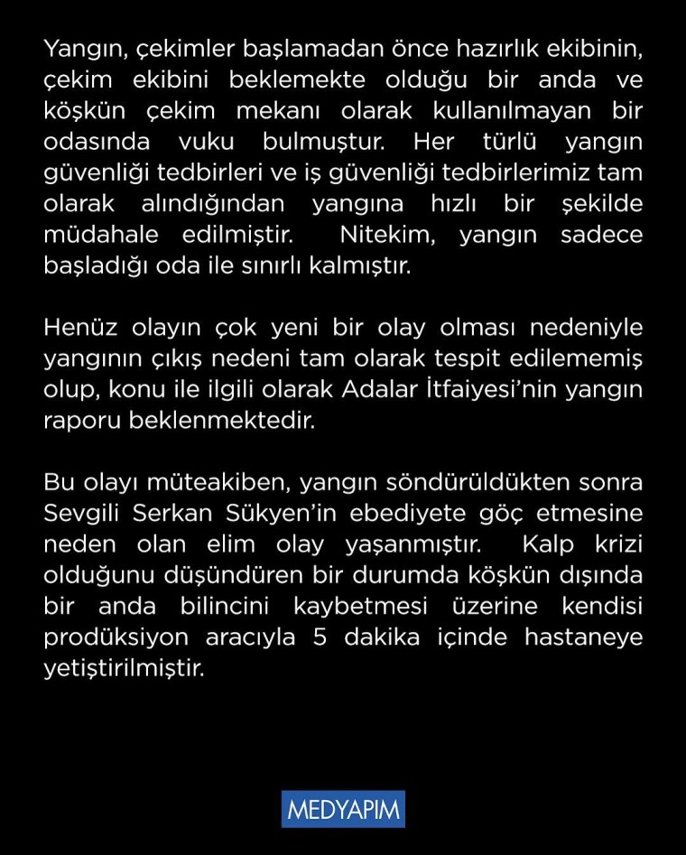 Dizinin üretim şirketi Medyapım, kelam konusu olaya ait açıklama yaptı. Açıklamada şunlar kaydedildi: