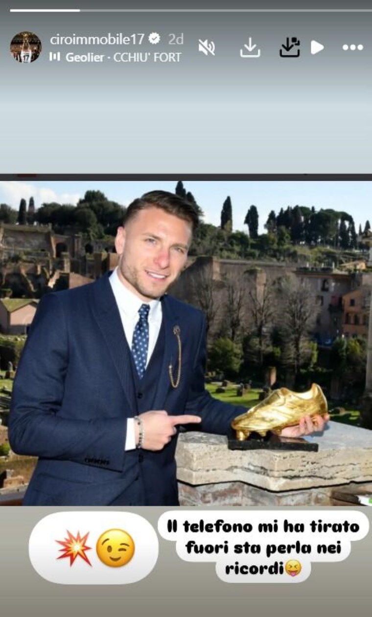 Immobile, Göztepe maçının akabinde toplumsal medyadan yaptığı açıklamada, Altın Ayakkabı ile fotoğrafını paylaştı. Immobile, bu paylaşımında, “Telefon, bu mücevheri anılardan çıkardı” sözlerini kullandı.