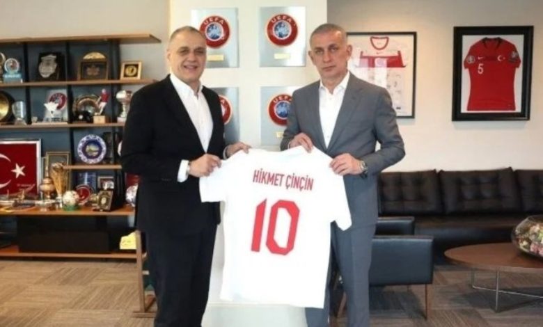 Hatayspor Asbaşkanı Dr. Serdal Şahutoğlu, Çinçin’e eşlik ederken; TFF Yönetim Kurulu üyeleri Zafer Bahadır Saraç ile Bilal Arslan da ziyarette yer aldı. Ziyaretin sonunda TFF Başkanı Hacıosmanoğlu, Hikmet Çinçin’e üzerinde isminin yazılı olduğu bir A Ulusal Ekip forması armağan etti.