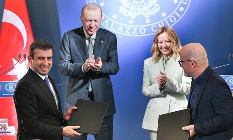 Cumhurbaşkanı Erdoğan ve Başbakan Meloni’nin huzurunda gerçekleşen merasimle, Mart ayında imzalanan İtalya’da ortak insansız hava araçları geliştirme ve üretimi ile yüksek teknoloji alanında iş birliğini öngören muahedenin evrakları resmi olarak değiştirildi.