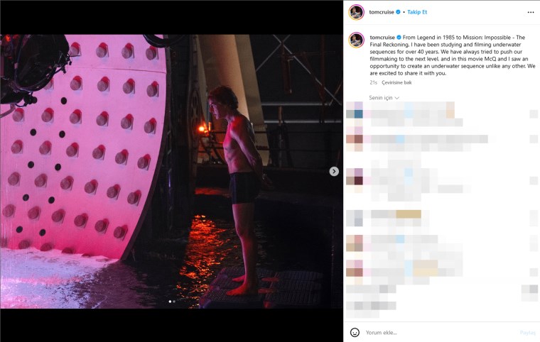 Cruise, su altı sahnesinin yıllara yayılan bir tecrübenin eseri olduğunu belirterek, “1985 imali Efsane’den (Legend) bugüne, 40 yılı aşkın müddettir su altı sahneleri üzerine çalışıyoruz. Sinemada çıtayı her vakit bir üst düzeye taşımaya çalıştık. Bu sinemada, McQ’yla (Christopher McQuarrie) birlikte, bugüne kadar gibisi görülmemiş bir su altı sahnesi yaratma fırsatımız oldu. Bunu sizinle paylaşmak için sabırsızlanıyoruz,” formunda açıklama yaptı.