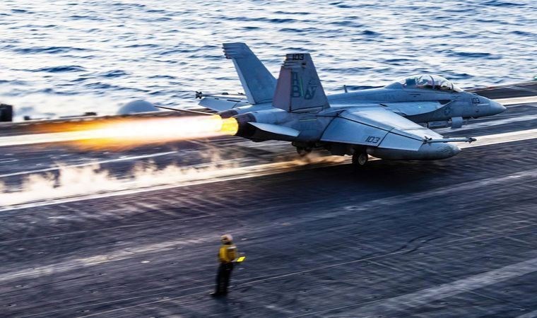 FA-18E tipi savaş uçağının, Kızıldeniz’de seyir halindeki uçak gemisinin hangar kısmına çekilirken denetimden çıkarak denize düştüğü bildirilmişti.