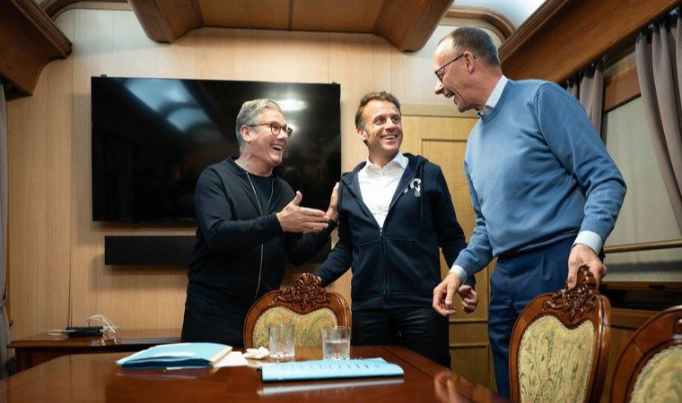 9 Mayıs Cuma günü Fransa Cumhurbaşkanı Emmanuel Macron, Almanya Başbakanı Friedrich Merz ve İngiltere Başbakanı Keir Starmer, Ukrayna’ya dayanak gayesiyle Kyiv’e hakikat yola çıktı.