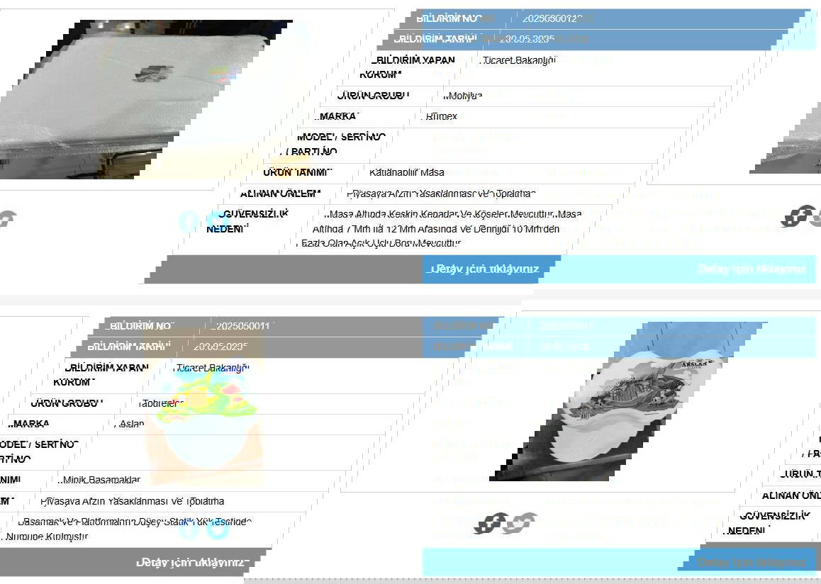 Ticaret Bakanlığı piyasa gözetimi ve kontrolü kapsamında yetkili kuruluşlar tarafından inançsız bulunan eserleri İnançsız Eser Bilgi Sistemi üzerinden duyurmaya devam ediyor.