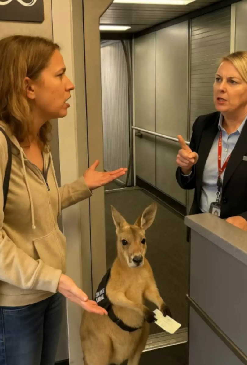 Videoda bir yolcunun, kangurusunun uçağa alınmaması üzerine hostesle hararetli bir tartışma yaşadığı anlar yer alıyor.
