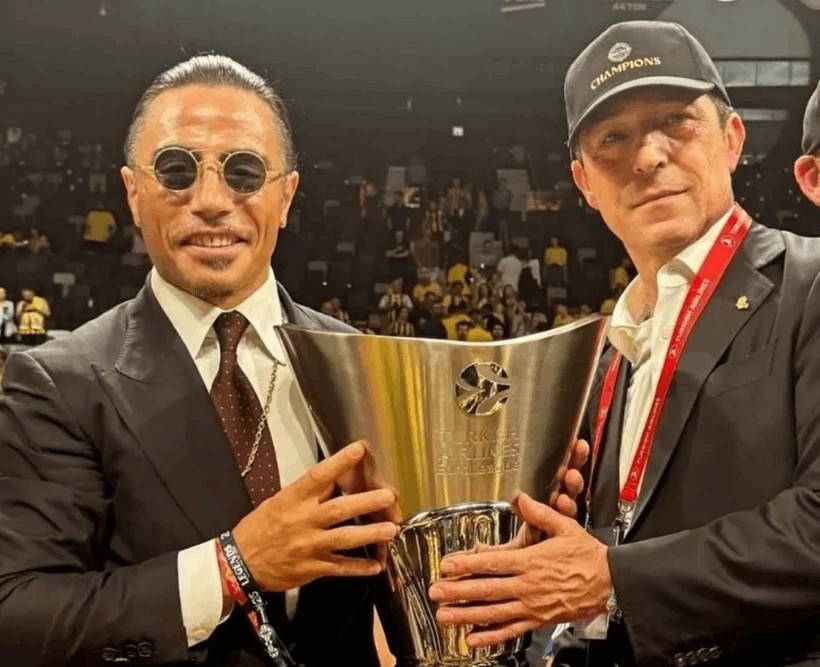 Nusret, Fenerbahçe Beko’nun EuroLeague şampiyonu olduğu maçta da kupa merasiminde alana girmiş ve oyuncular ile Lider Ali Koç’la fotoğraf çektirmişti.