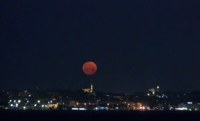 Yazın habercisi ‘Çilek Dolunayı’, eşsiz imgeler oluşturdu