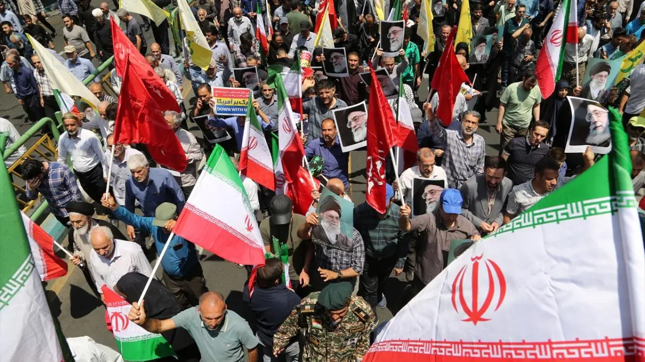 Tahran Üniversitesi yerleşkesinde kılınan cuma namazı sonrasında İnkılap Meydanı’na yanlışsız yürüyüşe geçen küme, İsrail ve ABD aleyhine sloganlar attı.