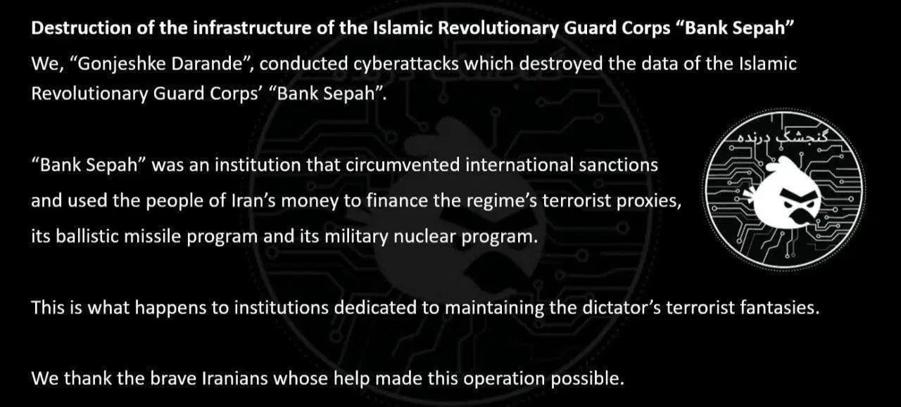 Sosyal medya üzerinden açıklama yapan küme, bankanın tüm datalarını yok ettiklerini belirtti. Bu açıklama, İran genelinde bankacılık sisteminde yaşanan geniş çaplı kesintilerle birebir vakte denk geldi.