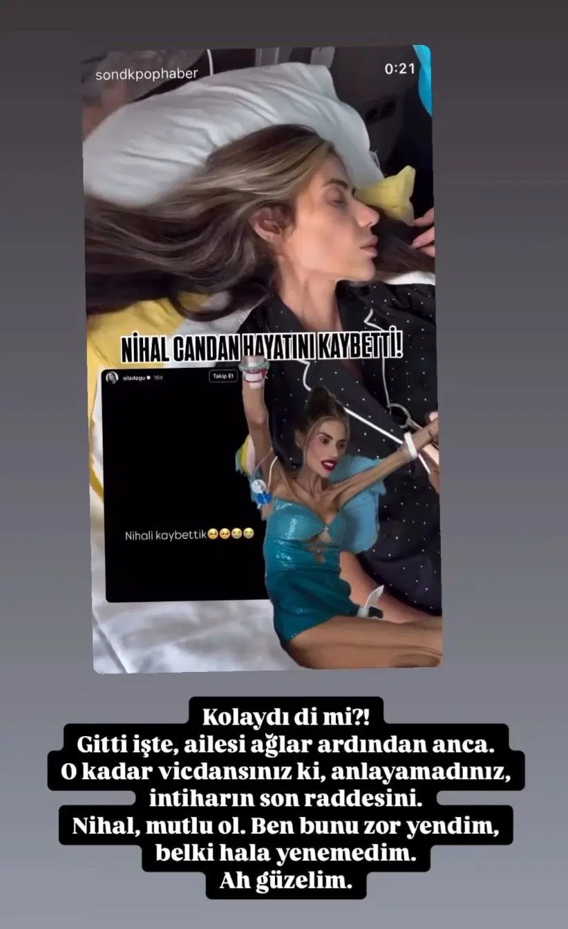 Ünlü şarkıcı İrem Derici, Nihal Candan’ın hayatını kaybetmesinin akabinde yaptığı paylaşımda, “Kolaydı değil mi? Gitti işte… Ailesi ağlar akabinde lakin. O kadar vicdansızsınız ki anlayamadınız intiharın son raddesini. Nihal keyifli oldu. Ben bunu sıkıntı yendim, tahminen hala yenemedim” ifadelerini kullandı.