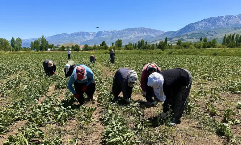 Erzincan’da üretim başladı: Günün birinci ışıkları ile tarlaya gidiyorlar: Hasadı ekim ayında yapılacak!