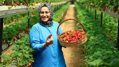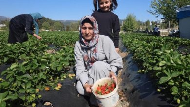 Kahramanmaraş'ta 7 dönüm alana kurulan çağdaş serada topraksız tarım sistemiyle üretilen çilekleri vatandaşlar kısmından kendileri toplayarak satın alıyor.