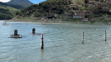 Samsun Vezirköprü'de baraj sularının altında kalan mezarlar, yıkılmış cami duvarı ve binlerce balık yavrusunun bulunduğu küçük su birikintisi, tabiat ve…