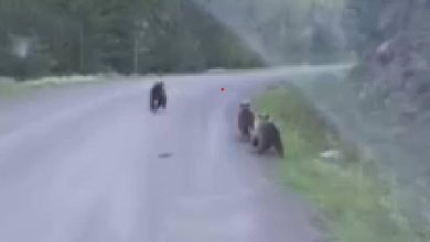Ankara’nın Beypazarı ilçesinde otomobiliyle konutuna giden bir kişi, yolda 3 ayıyla karşılaştı. O anlar cep telefonu kamerasına yansıdı.