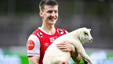 Norveç takımı Bryne, Haugesund galibiyetinde öne çıkan oyuncusu Axel Kryger'i klasik üslupta kuzu ile ödüllendirdi.